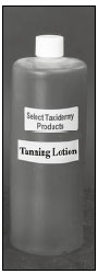 Select Tanning Lotion Save the cost of sending capes to the tanner. Excellent liquid tanning product that produces a complete and permanent tan. Instant hair set, no shrinkage and can be used with hide paste. |