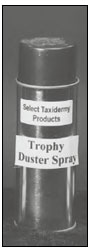 Trophy Duster Spray This excellent spray-on product dissipates dust on contact, dries quickly and leaves no build up even with frequent use. Specifically formulated to clean game heads, fish, bird and mammal mounts. |